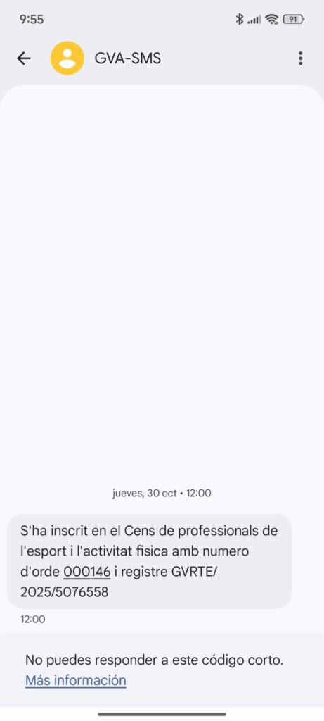 Aproximadamente a las 24h-48h recibiréis un SMS por parte de la Generalitat donde se os confirma que estáis ya registrados.