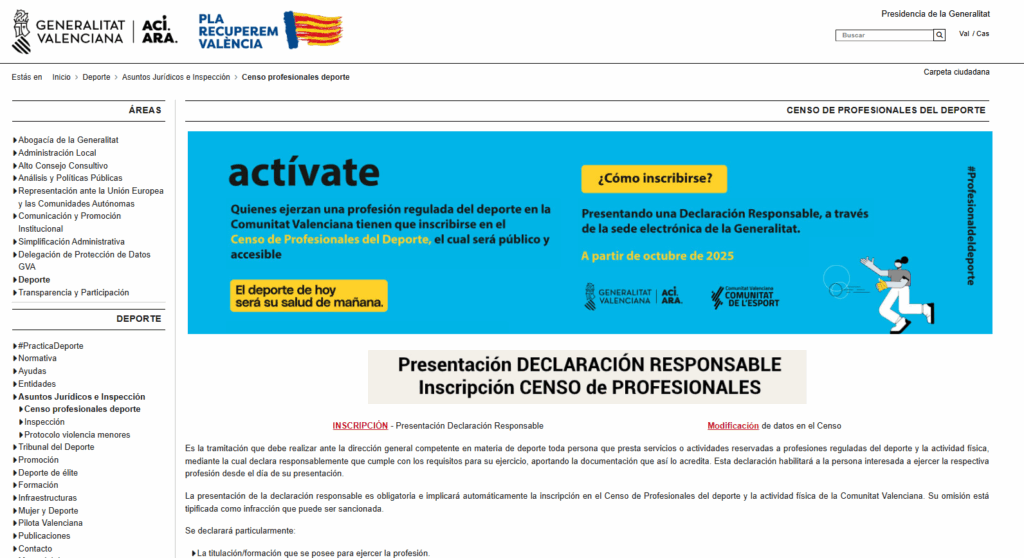 Desde COEDPI os traemos la guia para realizar la Declaración Responsable e inscribirse en el censo de profesionales del deporte de la comunidad valenciana.
