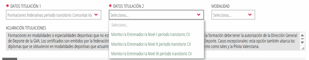 Si se disponen de formaciones federativas en periodo transitorio debéis seleccionar una de estas opciones:
