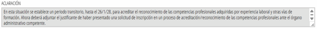 La documentación que deberán aportar más tarde es la declaración responsable de haber iniciado el proceso de «RECONOCIMIENTO DE COMPETENCIAS PROFESIONALES» en este enlace: