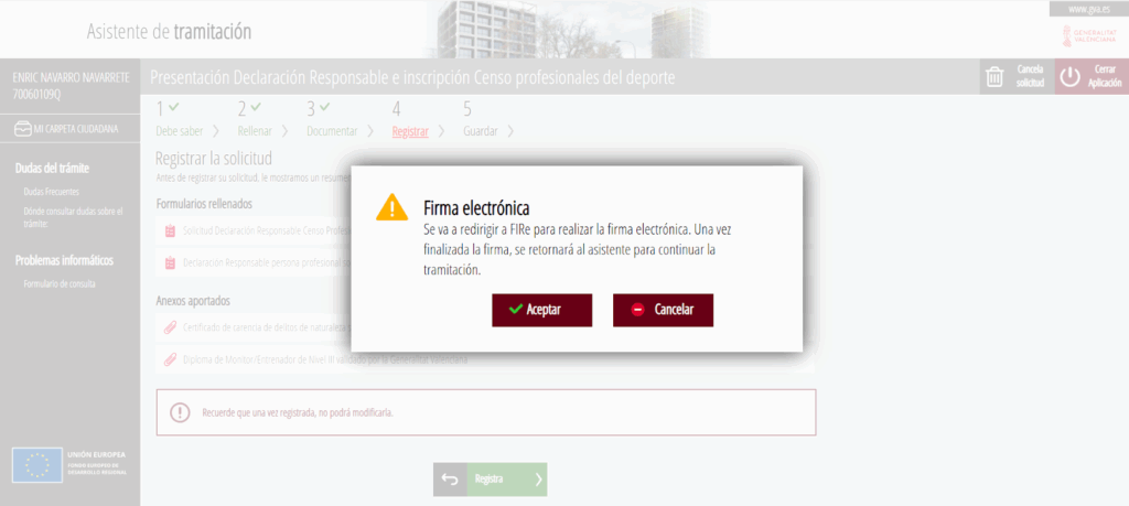 5.1 Si pulsais certificado, se abrirá directamente para que firméis con vuestra firma digital