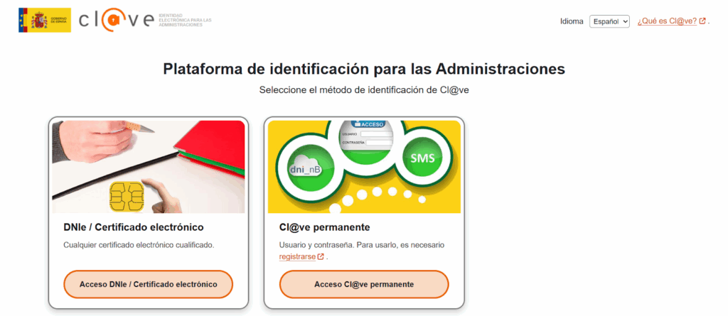 5.2 Si seleccionais cl@ve accedeis a una pantalla donde podeis seleccionar clave pin24 o podeis seleccionar certificado digital